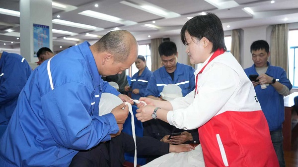 参加培训的员工认真学习急救知识,积极动手实操练习,在实践操作中不断提升自己的急救意识和应急处置能力。最终,48名员工通过理论测试和实践考核,获得红十字救护员证。 企业员工李先鑫深有感触地说:“在生死瞬间,急救知识就是那道最亮的光。学习急救知识不仅是为了自己,也是为了能够在他人需要帮助时伸出援手。”